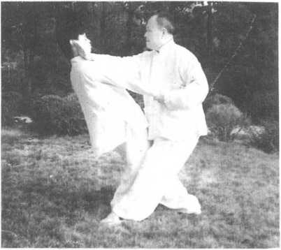 设我左手掌伸出为对方左手所握。我速以左手由对方腕下转 上,反握对方左手腕,往我怀中左侧采回,重心右移坐实,收回图48图48左脚,当对方由我 引深使其向前倾 之际,此时,我速 曲右臂以横掌由后 往前,以掌缘向对 方面部或颈部击 去。如彼又以左拳 击来,当对方举拳 未到之前,我右臂 下按左臂上提用 合劲撅之,彼必受 制,而右拳虽已伸图48图48至我近前,但已无能为力了(图48)。