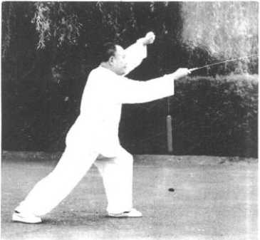 此式之收脚、收剑、跨步、搅剑以及翻手上步刺剑,纯以腰腿之 带动。而敏捷的步法也是至关重要的,每当起脚落步,虚实变转,都 要为每一剑式打下良好的基础,望勿忽视。