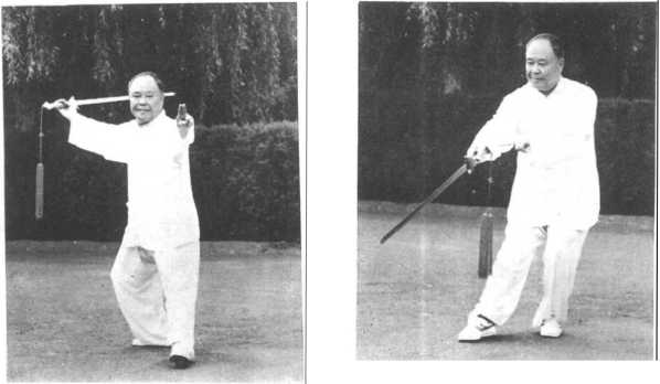 图102图102图103图103此式与上式虽均属劈法,但上式幅度较大,是以弓步抡剑下 劈。而此式,是以坐腿虚步下劈幅度较小,但也必须随同腰腿