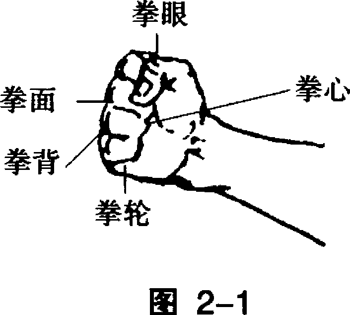 握拳时,无名指和小指松 握,为开口拳。(图2-4)